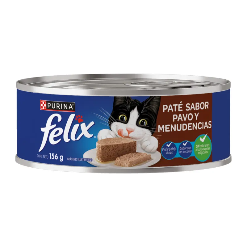 Delicioso paté de pavo y las menudencias, con una suave y agradable textura tendrán a tu gato esperando la hora de comer todos los días.