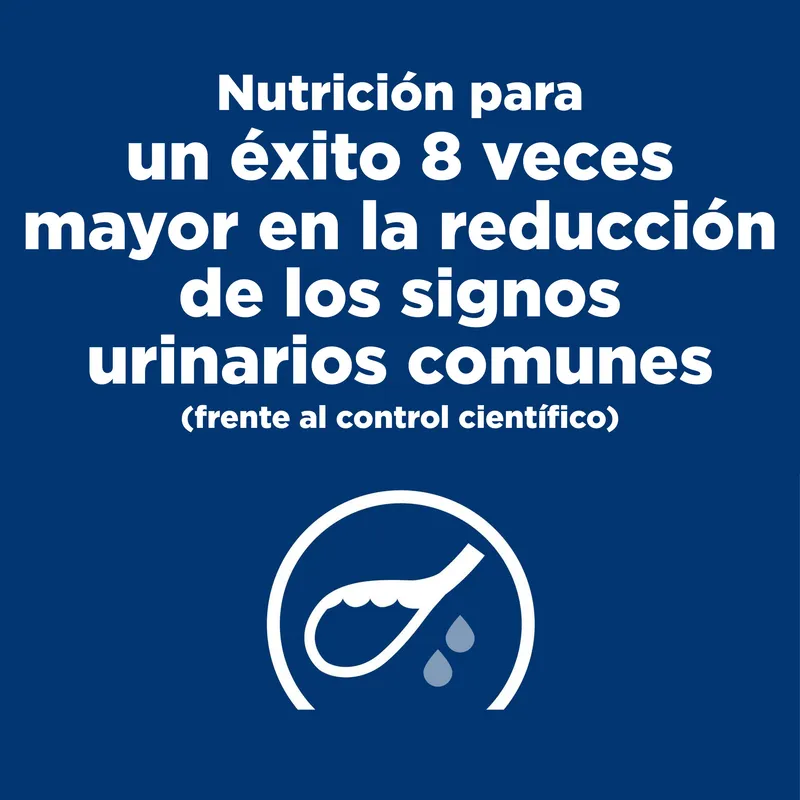 Una vejiga saludable comienza con el equilibrio adecuado de nutrientes vitales. El exceso de minerales puede fomentar la formación de cristales en la orina, lo que puede conducir a la creación de cálculos en la vejiga. Pueden causar molestias y provocar problemas más graves que requieren el cuidado de un veterinario. Los nutricionistas y veterinarios de Hill’s desarrollaron Prescription Diet c/d Multicare nutrición clínica especialmente formulada para apoyar la salud urinaria de un gato. De hecho, c/d Multicare es una nutrición clínicamente probada para reducir la tasa de recurrencia de los signos urinarios más comunes en un 89 %. Este alimento seco está elaborado con pollo y tiene un sabor irresistible que a tu gato le encantará.