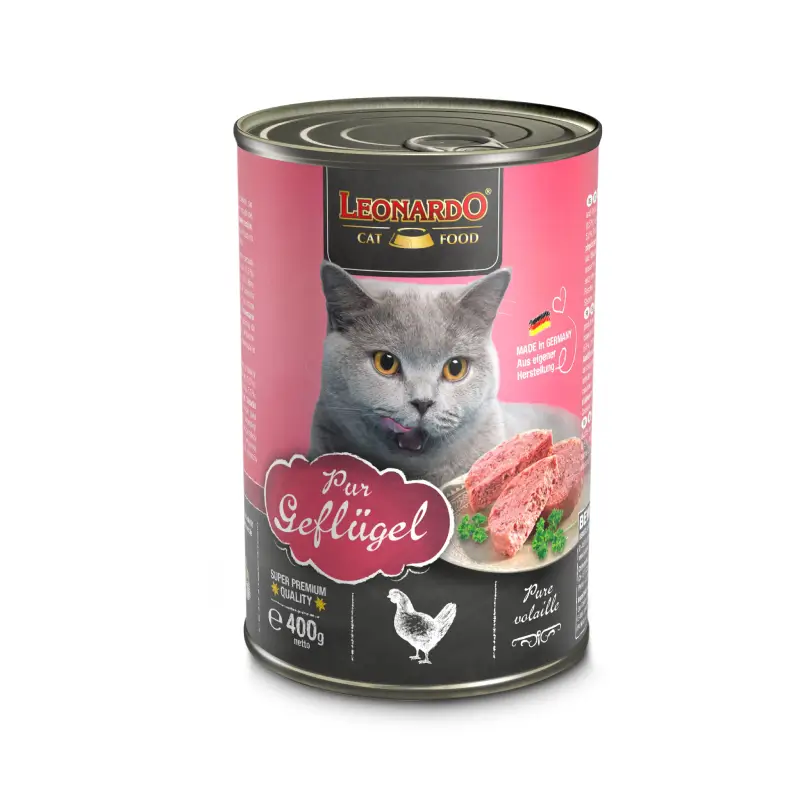 Los gatos, al igual que los felinos que viven en el medio natural, son carnívoros. Por eso solo utilizamos productos cárnicos frescos. Las latas LEONARDO Quality Selection Reich an Rind están hechas a base de carne fresca de ave y res, y corresponden a una dieta completa y balanceada para gatos adultos.